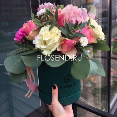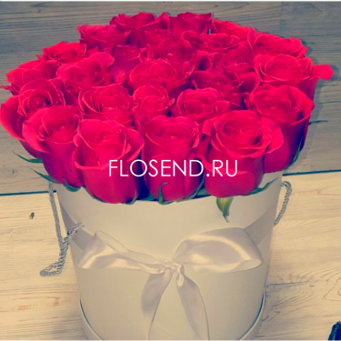 Красные розы в шляпной коробке